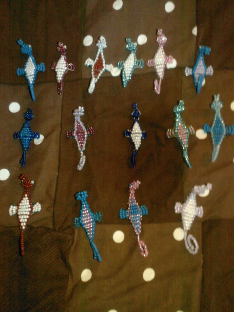 elikkäs laitan nyt tänne putkeen kaikki mahdolliset helmieläimet joita olen tehnyt. olen mm. vääntänyt. delfiinin, pingviinin, liskoja, hämähäkkejä, merihevosia, sammakoita,hiiriä, ja lisää meinaan tehdä erillaisia kunhan taas saa niistä innostuksen ja alan harjoitella niitä vaikeampia.
